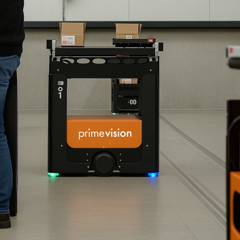 Standing at 875mm tall with an 80 x 60 cm loading surface ready to transport small or large items weighing over 30 kg, Prime Vision robots offer the versatility to carry a wide range of box sizes – making them highly suitable for K-Parts’ requirements.