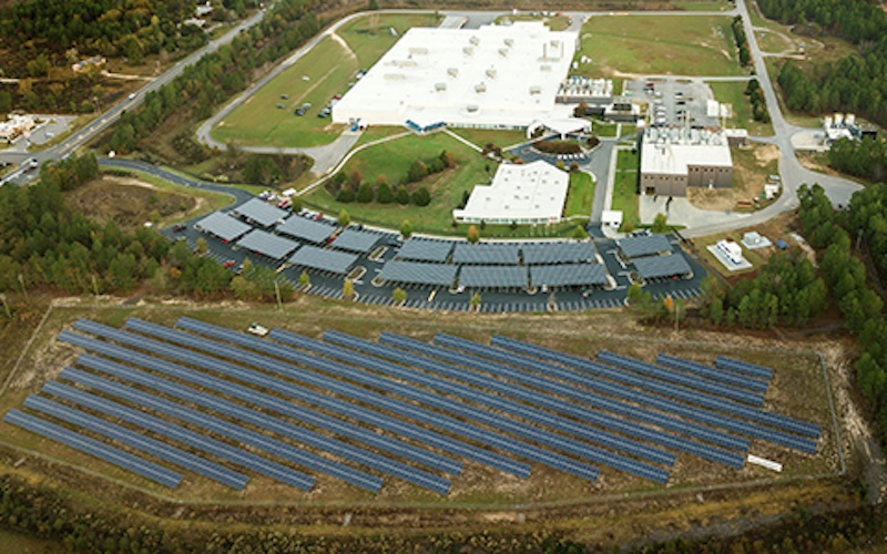In 2017, the company added a 1.35 MW ground-mounted solar array on approximately 7 acres and has an additional microgrid that generates enough solar power from panels on its covered parking lot to supply its entire administration building.