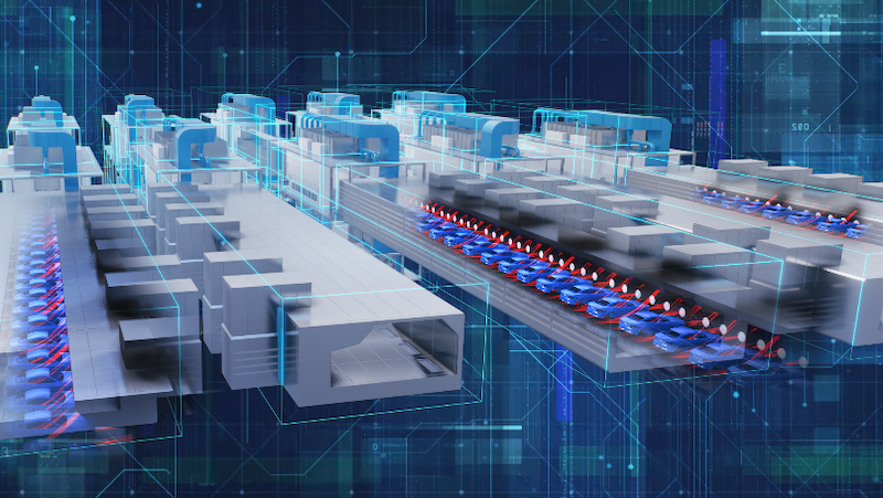This adaptive capability aligns with the high-output nature of the production plant and is made possible by a central high-bay warehouse and the EcoProFleet driverless transport system.